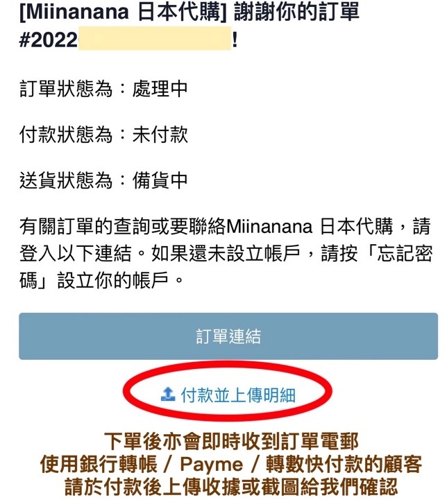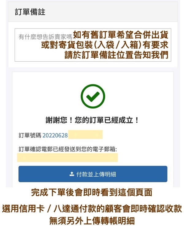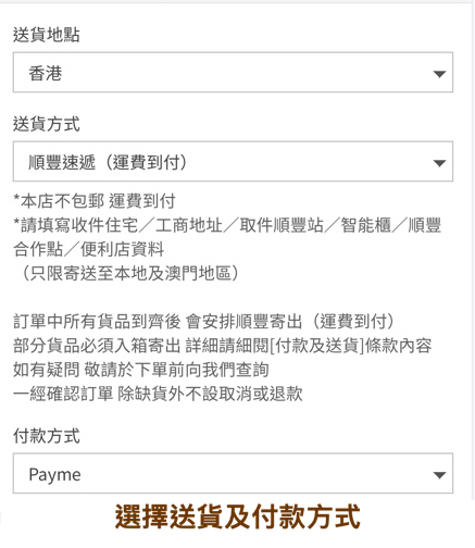 (確認款項後本店不會另行發送確認電郵,到貨後會再通知顧客)